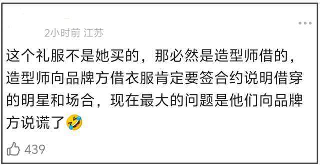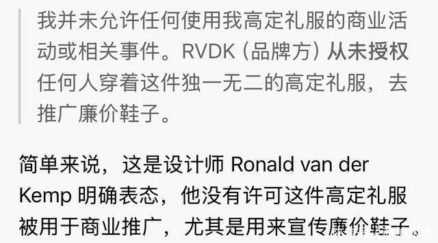 另外,不得不提的是,虽然高定设计师用词不当,但人家确实有权利发火,设计师强调没有授权借出去的裙子进行商业活动,意味着baby合作的造型团队涉嫌违约。