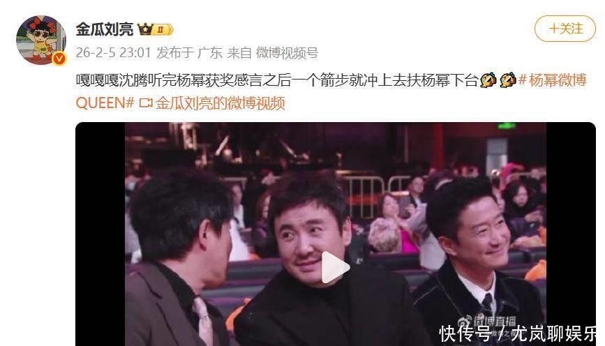 2026年微博之夜,杨幂第三次捧起“微博QUEEN”奖杯的瞬间,风头却差点被台下一位“观众”抢走。就在她发表完感言,转身准备走下台阶时,观众席里的沈腾如同接到了紧急指令,以近乎“弹射式”的起身和百米冲刺的速度,一个箭步冲到舞台边缘,稳稳扶住了身着高跟鞋和暗夜紫长礼服的杨幂。